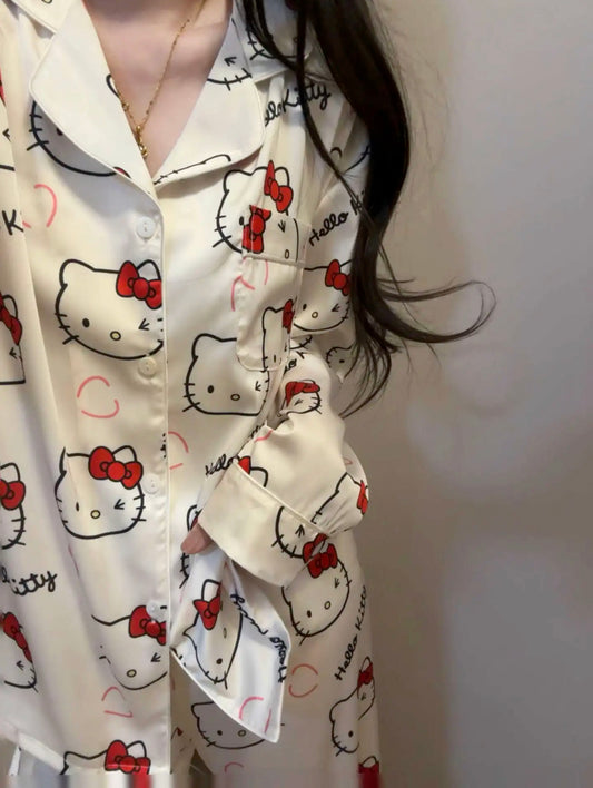 Full of Kitty Silky Spring Pajama Set